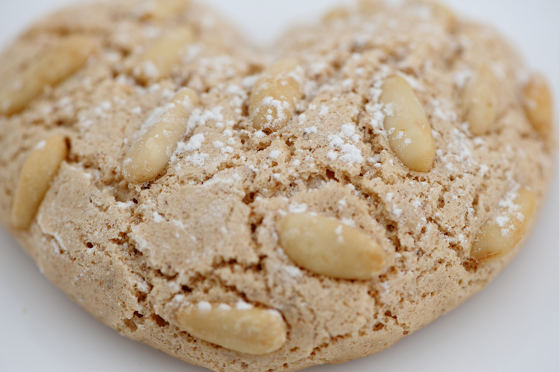 Viene preparato con i pinoli da cui prende anche il nome e con l’albume montato a neve e lo zucchero. È il giusto complemento nei vassoi di paste di mandorla.